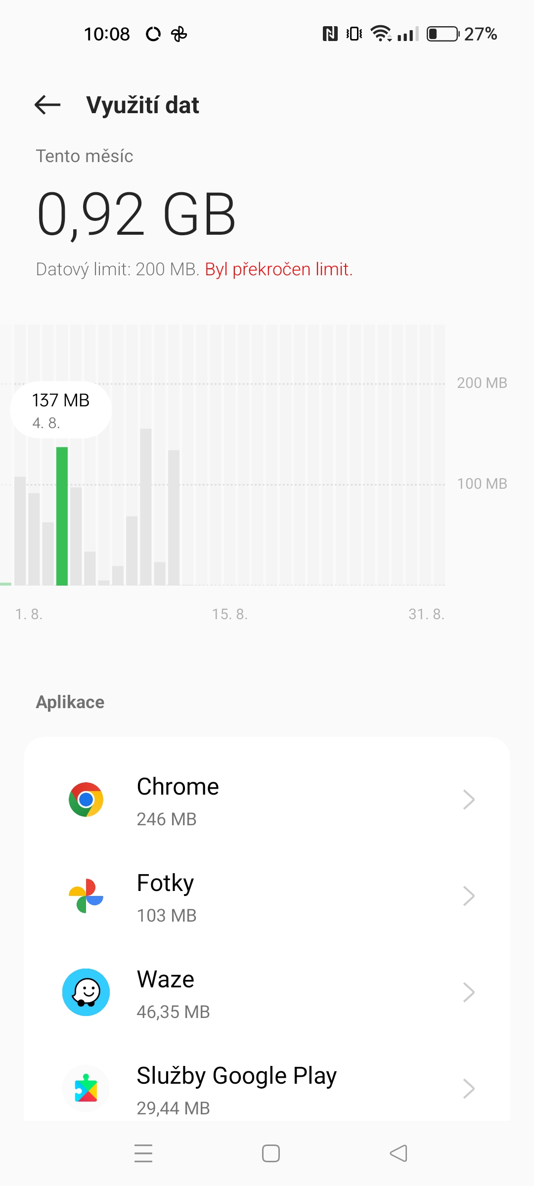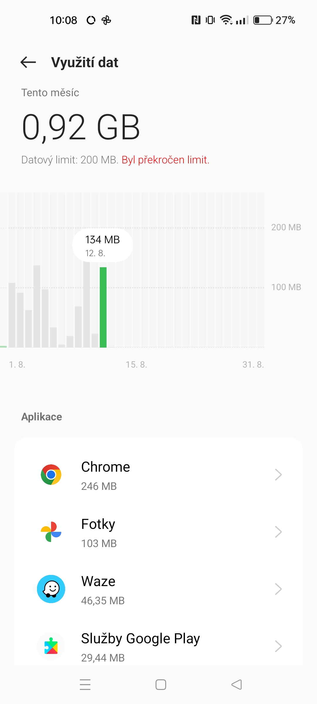Mám android 13. Ukazuje mi, že jsem v mobilních datech od prvního dne měsíce srpna spotřeboval 789MB včetně tetheringu. Ve vyúčtování na stránce odorik.cz mám ale pro toto telefonní číslo uvedeno od prvního dne měsíce srpna celkem 1226MB. Kdyby se jednalo o rozdíl v řádu jednotek nebo desítek MB, tak nic neřeším, ale toto je rozdíl téměř dvojnásobek. Jak je to možné? Nemám problém si přikoupit větší tarif, ale nesoulad to nevyřeší. Pokud je pravda, co mám ve vyúčtování od odoriku, tak ani nezjistím, která apka to udělala. Díky za pomoc