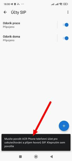 Sám jsem se na to nachytal, že jsem myslel, že ACR phone je rozbitý, a bylo to tímto. Kdyžtak zkuste sip účet zakázat a znovu povolit, abyste se přes to černé okno dole (je třeba na něj ťuknout) dostal k těm záhadným "Účtům pro volání". Pokud to není tímto, tak prosím vytvořte log a pošlete vývojáři.